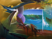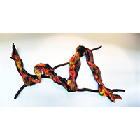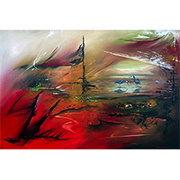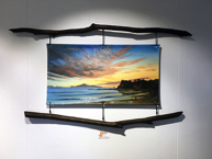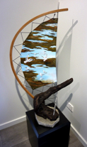 The works under the mixed media title generally are a combination of oil and acrylic paint associated with driftwood, granite, stainless steel and a variety of other materials, organic and inorganic. The canvasses can be hemmed and stretched between combinations of materials.