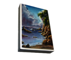 The traditional style of acrylics I paint are either on stretched canvas or on canvas which is then mounted on a 5mm thick mount glued to a traditional canvas. Both methods can then be left as is or framed. Both methods look great on the wall…….it’s up to personal preference.
